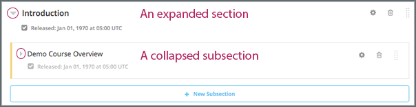 • To add a subsection to the end of the section, expand the section and select New Subsection.