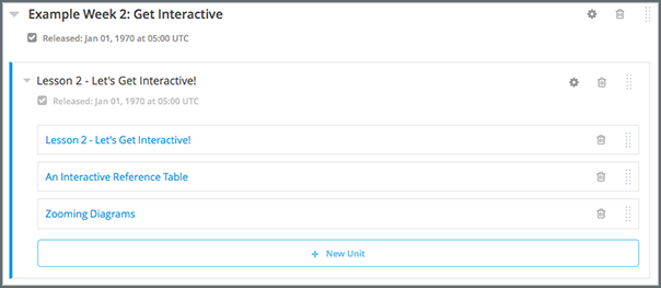 • To add a unit to the end of a subsection, expand the subsection and select New Unit. The unit page opens.