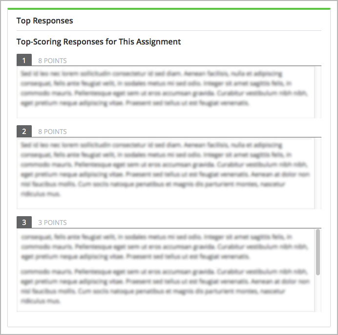 Section that shows the text and scores of the top three responses for the assignment.