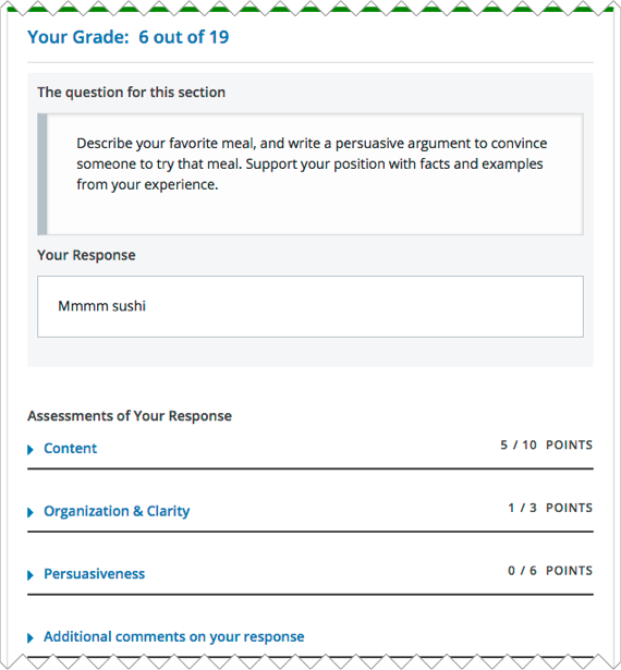You receive your score for an open response assessment when you have completed the following steps.
