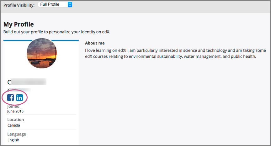Your personal profile allows you to optionally share information about yourself with other participants in the courses that you take. If you choose to add profile information, course teams and other learners in your courses can view the information that you share.